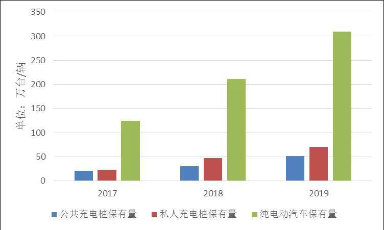 圖1 2017-2019年充電樁與電動(dòng)汽車保有量