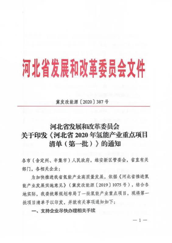 河北省發(fā)展改革委近日印發(fā)通知,公布了《河北省2020年氫能產(chǎn)業(yè)重點項目清單(第一批)》。此次列入清單的重點項目共43個,涵蓋制氫、氫能裝備、加氫站、燃料電池、整車生產(chǎn)、應(yīng)用示范、技術(shù)研究的氫能全產(chǎn)業(yè)鏈條,總投資約87億元。其中在張家口市布局項目21個。