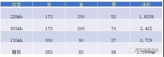 在這個(gè)思路下,我也找了一些大巴的電芯給,如下所示,這顆目前能量密度最高的302Ah是從原有的規(guī)格240Ah一路進(jìn)化下去的。按照這個(gè)體積來算,比之前那顆,體積是2.2倍,換算一下之前長電芯容量137Ah,由于方殼厚+大尺寸電芯能充分利用空間,所以需要再打85%-90%的折扣,估算下來是120Ah左右。