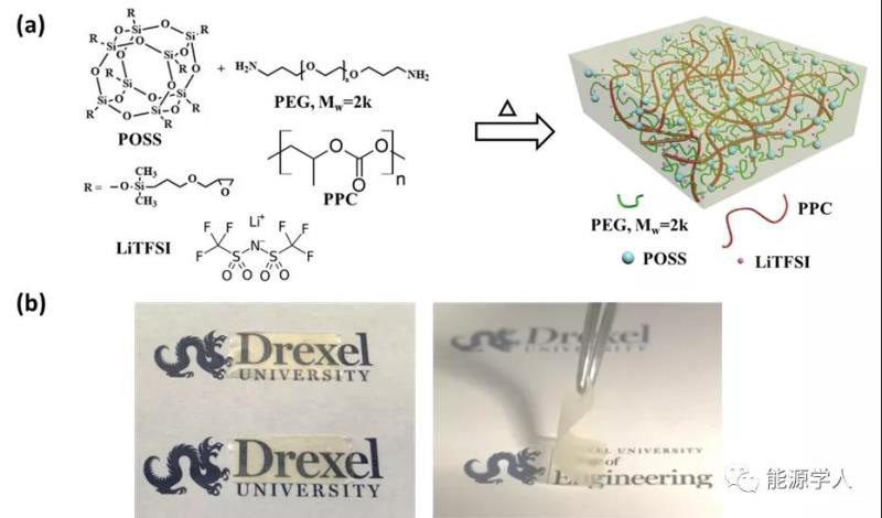 聚合物電解質(zhì)憑借其穩(wěn)定的物理結(jié)構(gòu)與電化學(xué)性能,已經(jīng)成為全固態(tài)鋰電池發(fā)展過程上的重要方向。過往的研究已經(jīng)證明,基于交聯(lián)聚環(huán)氧乙烷 (PEO)的聚合物電解質(zhì)能夠有效延長鋰金屬陽極循環(huán)壽命、改善界面性能。然而,由于鋰離子與乙烯氧基的強(qiáng)耦合作用,鋰離子遷移數(shù)只能維持在0.2左右的較低水準(zhǔn),這會(huì)導(dǎo)致充電過程中的不均勻鋰沉積并加速鋰織晶的生長。在不顯著影響高分子鏈柔性以及電解質(zhì)離子導(dǎo)電率的前提下,有效弱化鋰離子與高分子鏈之間的耦合作用,是進(jìn)一步提高電池充放電速度、延長壽命的必要條件。先前的研究提供了另一種備選材料,聚碳酸丙烯酯(PPC),其與鋰離子的弱耦合作用可以提高離子遷移數(shù)至0.7。