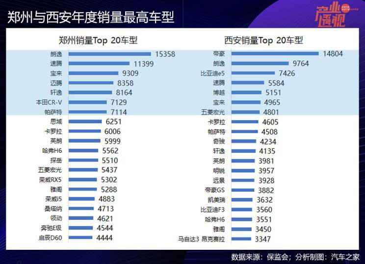 鄭州地處中原,西安乃關中腹地,兩地同為省會城市,也都是汽車消費大城,2019年的汽車保有量都超過300萬輛,千人保有量也接近:鄭州369輛,西安336輛,兩地常住人口數(shù)量也很接近,不同的是:2019年鄭州的GDP有1.16萬億元,西安為9300萬億元。這兩個城市的汽車消費,可以比比看。