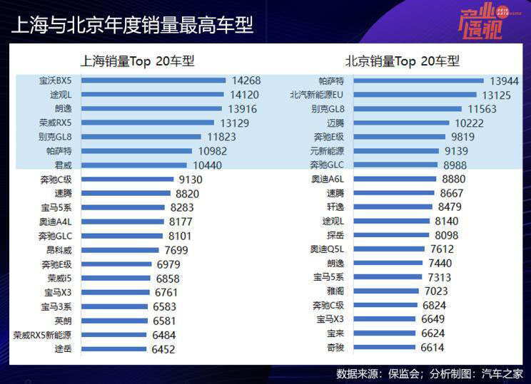 兩地的熱銷車型也差別明顯,比如,上海銷量最高的豪華品牌車型是中型轎車奔馳C級,而北京的是中大型轎車奔馳E級;奧迪A4L在上海銷量排第11位,而卻不在北京的Top 20車型榜上,反倒是中大型轎車奧迪A6L躋身于北京新車銷量榜第8位。比較詭異的是寶沃,寶沃工廠地處北京,卻在上海市場摘得頭牌。怎么做到的?以裙帶關系和一貫打法看,神州出行內(nèi)部采購消納恐怕不在少數(shù)。
