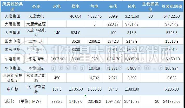據(jù)北極星太陽能光伏網(wǎng)統(tǒng)計,共有9家國企公布了詳細的2019年度能源裝機情況,包括大唐發(fā)電、大唐新能源、上海電力、吉電股份等。