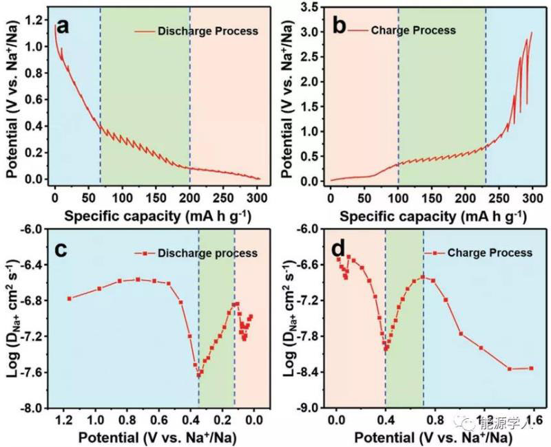 鈉離子電池(SIBs)因其低成本和豐富的地球儲(chǔ)量,被公認(rèn)為是可替代當(dāng)前鋰離子電池的一種很有前景的大型儲(chǔ)能系統(tǒng)。由于Na+的半徑比Li+大,且Na+擴(kuò)散動(dòng)力學(xué)更慢,因此尋找具有高可逆容量、高倍率和長壽命的SIB負(fù)極材料是一項(xiàng)艱巨的任務(wù)。與可逆容量低的鈦基氧化物、結(jié)構(gòu)穩(wěn)定性差的金屬合金和轉(zhuǎn)化型活性材料相比,含大量石墨微晶、缺陷和孔的硬炭材料具有優(yōu)異的性能。一般來講,Na+的儲(chǔ)存行為主要分為三類:邊緣、缺陷和官能團(tuán)的吸附,石墨插層,以及孔隙填充。在負(fù)極材料的充電曲線中,高石墨化硬碳通常表現(xiàn)出兩個(gè)區(qū)域:位于低電位(0.01–0.10 V)的平臺(tái)和位于高電位(0.10–1.00 V)的斜線,而材料的可逆容量主要由平臺(tái)區(qū)決定。然而,在高電流密度下,平臺(tái)容量非常容易受到極化的影響,從而降低鈉儲(chǔ)存容量。盡管鈉的儲(chǔ)存行為與不同電位區(qū)域的對(duì)應(yīng)關(guān)系一直存在著爭議,但眾所周知通過引入孔隙率可作為減少極化影響的有效策略,并且改善鈉的擴(kuò)散動(dòng)力學(xué)。