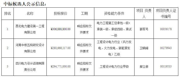 第三名:四川電力設(shè)計咨詢有限責(zé)任公司,折合單價2.95元/W。