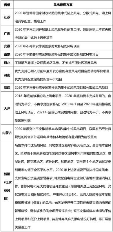 近日,江蘇、廣東、山東等10個?。ㄗ灾螀^(qū)、直轄市)就國家能源局《關(guān)于做好2020年風(fēng)電和光伏發(fā)電項(xiàng)目建設(shè)工作的通知》做出了進(jìn)一步的安排。其中江蘇、廣東、安徽、山東、陜西、內(nèi)蒙古和新疆均明確不再安排需要國家補(bǔ)貼的新增陸上風(fēng)電項(xiàng)目。