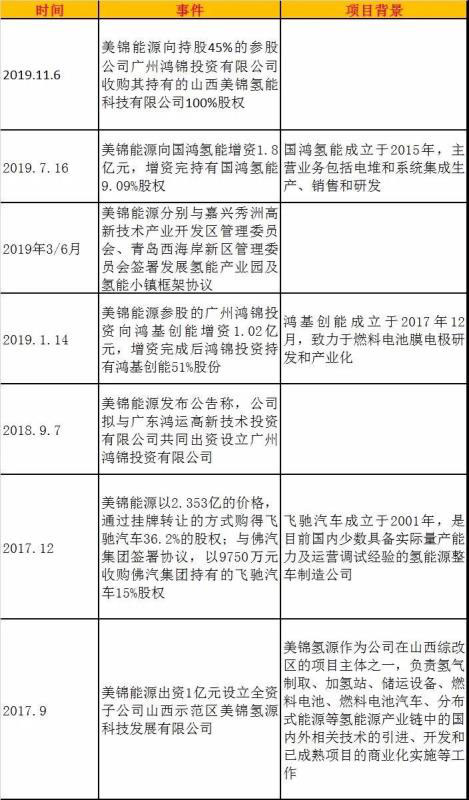 資料顯示,美錦能源主要從事焦炭及其制品、煤炭、天然氣及煤層氣等生產(chǎn)經(jīng)營(yíng)。公司2017年開始籌劃布局氫能及燃料電池行業(yè),具體進(jìn)展見下表: