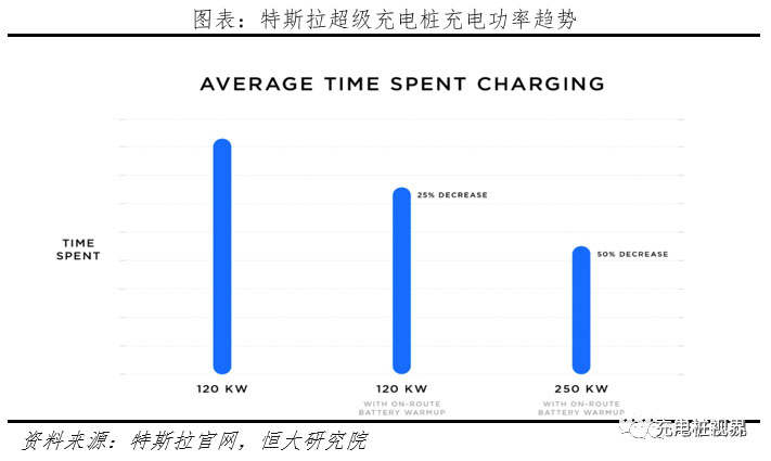 2019年北京市用戶快充樁充電時間長達1.32h,充電慢已經(jīng)成為車主核心痛點,之后隨著單車帶電量的提升,若不提升公共充電功率,這一問題只會愈加嚴重,因此目前各方勢力都在努力提升充電樁功率。以特斯拉為例,2019年3月推出第三代功率250kW的充電樁,相比第二代120kW提升了108.3%;據(jù)充電聯(lián)盟統(tǒng)計,我國新增公共充電樁平均功率從2016年69.23kW持續(xù)增加到2019年115.76kW,功率提升67.2%。