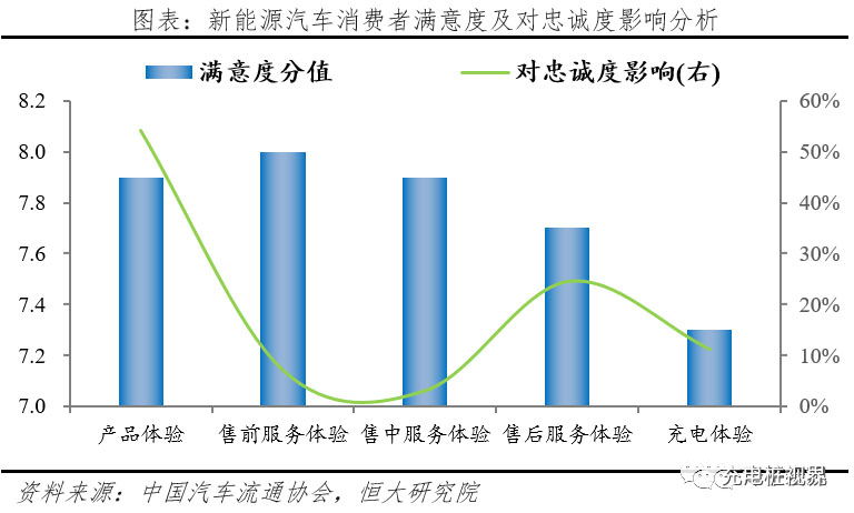 雖然我國車樁比不斷下降,充電配套持續(xù)改善,但是行業(yè)仍然存在部分問題亟待解決,新能源汽車用戶對充電的滿意度仍然較低,嚴重影響了新能源汽車消費體驗。2019年8月,中國汽車流通協(xié)會發(fā)布的《2019新能源汽車消費市場研究報告》調(diào)查顯示:充電體驗對品牌忠誠度影響11.2%,遠高于售前和售中服務體驗;而當前新能源車用戶對充電體驗滿意度最低,只有7.3分,說明充電體驗已成為他們的核心痛點。