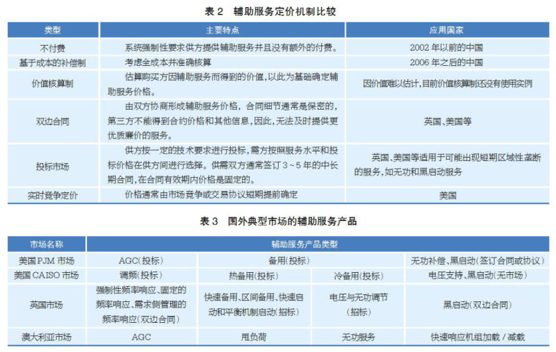 隨著我國新能源發(fā)電比例的不斷升高,電力系統(tǒng)的靈活性要求也將隨之提高。由于新能源出力是波動的,當它進入系統(tǒng)之后,系統(tǒng)的上下出力變化變得頻繁且更加重要。隨著新能源的大規(guī)模并網,電力系統(tǒng)調節(jié)手段不足的問題越來越突出,原有的輔助服務計劃補償模式和力度已不能滿足電網運行需求。國外成熟電力市場一般通過現(xiàn)貨市場中的實時平衡市場或平衡機制實現(xiàn)調峰。而當時我國尚未啟動電力現(xiàn)貨市場建設,亟須利用市場化手段提高獎罰力度,以更高的補償價格激勵發(fā)電企業(yè)等調節(jié)資源參與電力輔助服務?;诖?,我國在2006年提出了一種新的電力輔助服務產品“調峰”,但現(xiàn)有的“調峰”輔助服務品種和輔助服務定價補償機制尚不能滿足市場化配置資源的要求。電力輔助服務屬于“公共產品”。電力輔助服務應用于整個電力系統(tǒng),為保障系統(tǒng)安全穩(wěn)定運行和可靠供電發(fā)揮著重要作用,所有系統(tǒng)的主體均是受益者。因此,輔助服務成本應該在全網分攤而不僅僅是發(fā)電側分攤。本文通過梳理中外輔助服務市場的運行現(xiàn)狀,分析現(xiàn)有的輔助服務價格機制及我國輔助服務市場的尚待完善之處,為我國輔助服務市場未來的發(fā)展提出一些建議。