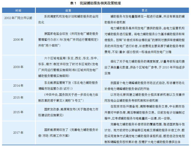 我國電力輔助服務市場的交易品種包括調頻、調峰、無功調節(jié)、備用、黑啟動服務等多個品種,但目前在市場建設初期,各地主要圍繞調峰、部分地區(qū)輔以調頻開展輔助服務市場建設。隨著電力體制改革的逐步推進,我國電力輔助服務的發(fā)展基本上經歷了2002年以前無償提供、2006~2014年計劃補償和之后的市場化探索三個主要階段(見表1)。