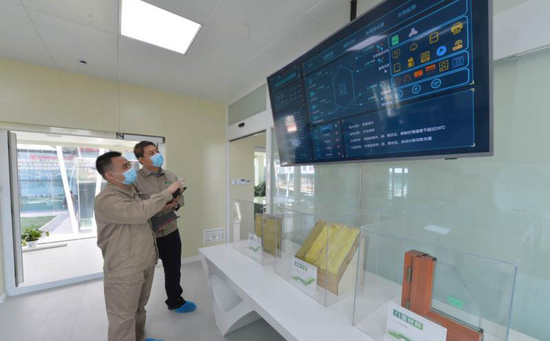 這座135平方米的“0+小屋”,最大限度利用了屋頂、路面等可用空間,鋪設(shè)了60塊光伏板,光照條件較好情況下,每天可發(fā)出60度電,完全做到了建筑用能自給自足,并實(shí)現(xiàn)余電上網(wǎng),成為區(qū)域分布式電源。同時配備了零能耗建筑運(yùn)行管理系統(tǒng)和40千瓦時的儲能設(shè)備,光伏產(chǎn)生的電能可以儲存起來,在夜間和光照不足情況下向建筑內(nèi)用電設(shè)備進(jìn)行放電。通過創(chuàng)新研發(fā)應(yīng)用家庭能源路由器,實(shí)現(xiàn)綜合能源控制,可以在電量富余情況下,適時啟動調(diào)節(jié)熱水器、洗衣機(jī)等,將電能轉(zhuǎn)換為熱能進(jìn)行儲存,自動完成預(yù)定家務(wù)。