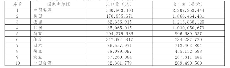 越南,2019年出口越南金額為10.72億美元,占中國總出口額為5.79%,2018年出口越南金額為8.03億美元,同比上漲了33.50%。