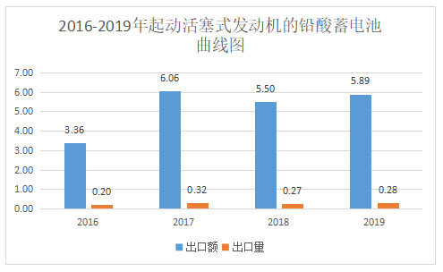 4、2016-2019年起動用鉛酸蓄電池出口曲線圖(出口額單位:億美元;出口量單位:億只)