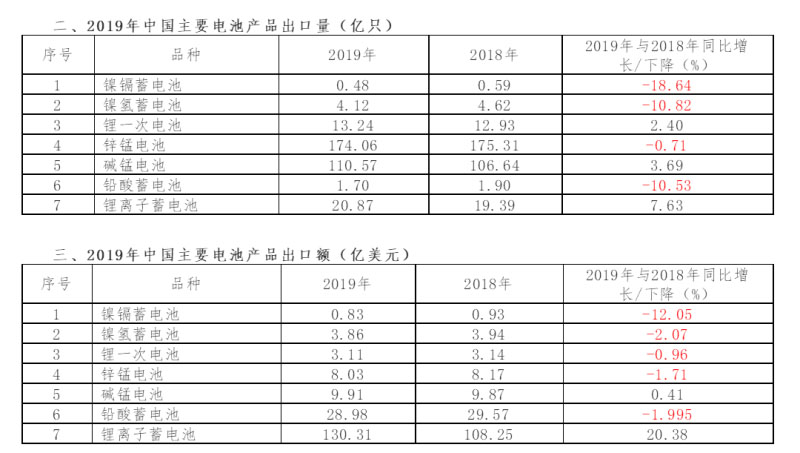 1、2019年鋰離子蓄電池出口量為20.87億只,2018年出口量為19.39億只,與上一年相比,同比上漲了7.63%。2019年鋰離子蓄電池出口額為130.31億美元,2018年出口額為108.25億美元,同比上漲了為20.38%。