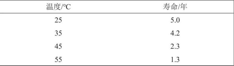 (1)溫度對(duì)備電工況的可用周期影響較大,溫度變高,可用壽命明顯縮短;
