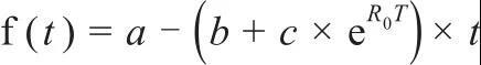 式中,a、b、c、R0均為常數(shù);t為試驗(yàn)時(shí)間;T為試驗(yàn)溫度,K。