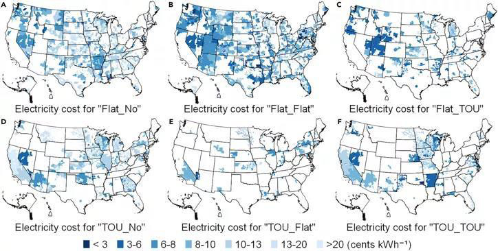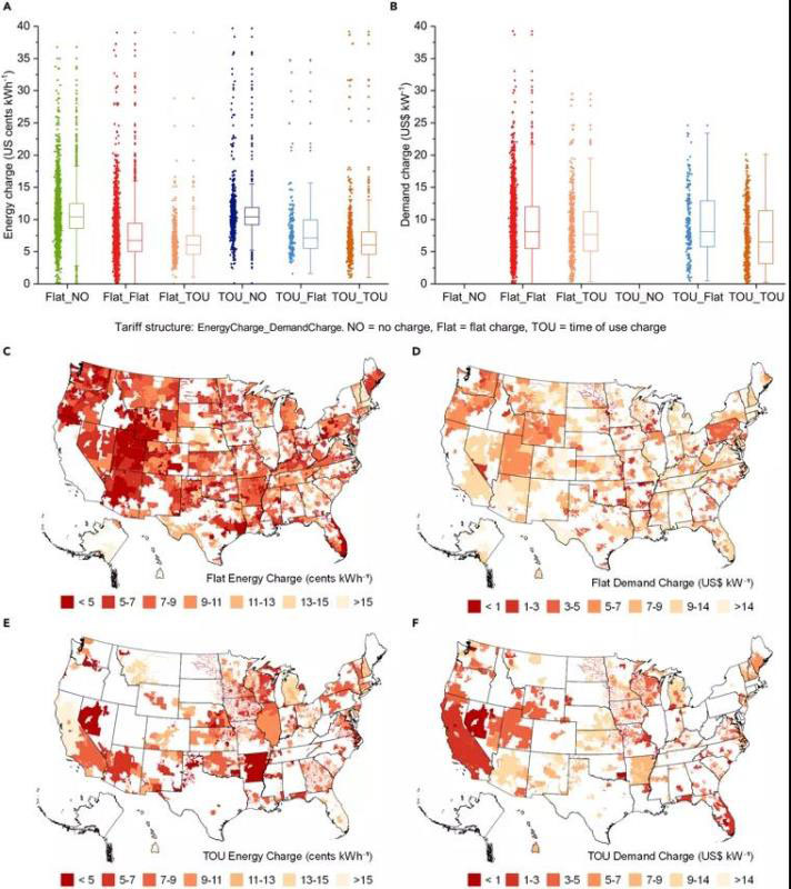 研究發(fā)現(xiàn),單一固定電費(fèi)覆蓋面更廣,這意味著與分時(shí)電費(fèi)相比,它們在美國更易獲得。高峰時(shí)段的電費(fèi)較高,而在非高峰時(shí)段的電費(fèi)相對較低。電費(fèi)結(jié)構(gòu)的差異在很大程度上取決于每個(gè)電費(fèi)的設(shè)計(jì)過程以及電費(fèi)的回收成本,例如輸配電網(wǎng)絡(luò)的安裝和維護(hù)。
