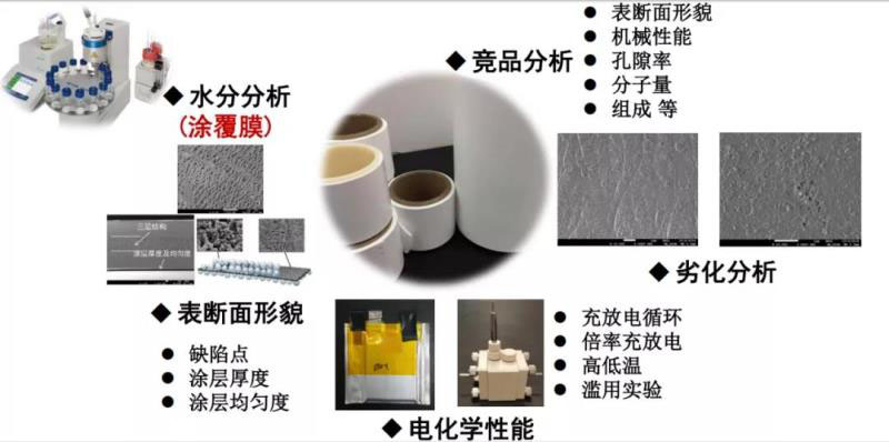 薄集流體化之后,大電流下、內(nèi)阻大發(fā)熱量高,涂布、輥壓收卷容易出現(xiàn)斷片現(xiàn)象。少粘結(jié)劑會導(dǎo)致活性物質(zhì)易脫落,長循環(huán)接觸內(nèi)阻增大。薄隔膜趨勢之下,會出現(xiàn)單層PE基膜熱穩(wěn)定差,涂層膜內(nèi)阻較大,長循環(huán)后涂層易團聚、脫落等。