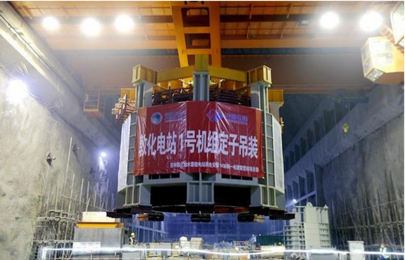 4月16日10時(shí)10分,國(guó)網(wǎng)新源吉林敦化抽水蓄能電站地下廠房傳來(lái)喜訊,1號(hào)發(fā)電電動(dòng)機(jī)定子順利吊裝就位,標(biāo)志著電站機(jī)組安裝工作又邁出了關(guān)鍵一步,1號(hào)機(jī)組投產(chǎn)發(fā)電進(jìn)入倒計(jì)時(shí)。