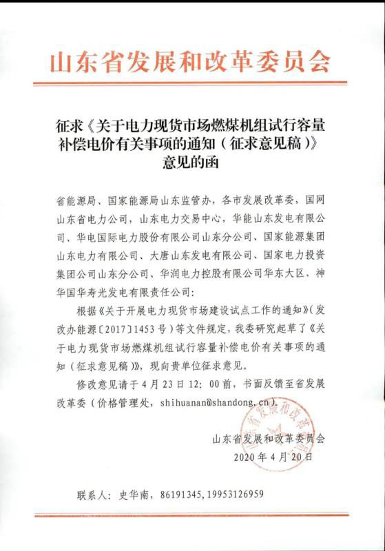 為穩(wěn)妥推進山東電力現(xiàn)貨市場建設(shè),根據(jù)《關(guān)于開展電力現(xiàn)貨市場建設(shè)試點工作的通知》(發(fā)改辦能源〔2017〕1453號)、《關(guān)于深化電力現(xiàn)貨市場建設(shè)試點工作的意見》(發(fā)改辦能源規(guī)〔2019〕828號)、《山東省深化燃煤發(fā)電上網(wǎng)電價形成機制改革實施方案》(魯發(fā)改價格〔2019〕1228號)等文件規(guī)定,我委起草了《關(guān)于電力現(xiàn)貨市場燃煤機組試行容量補償電價有關(guān)事項的通知(征求意見稿)》,現(xiàn)向社會公開征求意見。