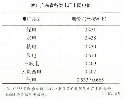 (5)從目前廣東省各類典型電廠上網(wǎng)電價(jià)來看,廣東省天然氣價(jià)格在全國處于較高水平,且相對(duì)比其他發(fā)電類型要高(如表1),天然氣燃料成本在發(fā)電成本中占比超過70%,燃料成本價(jià)格成為影響天然氣電廠經(jīng)營最重要因素。