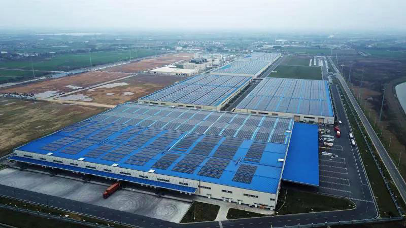 江蘇省境內(nèi),距離茅山風(fēng)景區(qū)20多公里處,坐落著常州金壇直溪工業(yè)園。從空中俯瞰該工業(yè)園,大片的太陽(yáng)能電池板,被整整齊齊地安置在幾處相鄰廠房的屋頂上,像一塊藍(lán)色地毯,與白色墻面和周邊蜿蜒的高速公路融為一體,為園區(qū)平添了一道獨(dú)特景致。