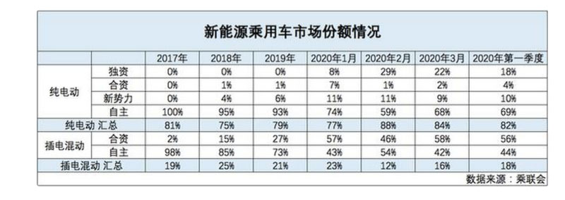 在剛剛過去的3月份,獨(dú)資車企特斯拉的表現(xiàn)近乎超神,特斯拉Model 3一款車型的銷量已經(jīng)占到新能源市場整體銷量的18%,造車新勢力則占比7%,合資車企占比11%,而自主品牌傳統(tǒng)車企的市場份額則降至不足64%。