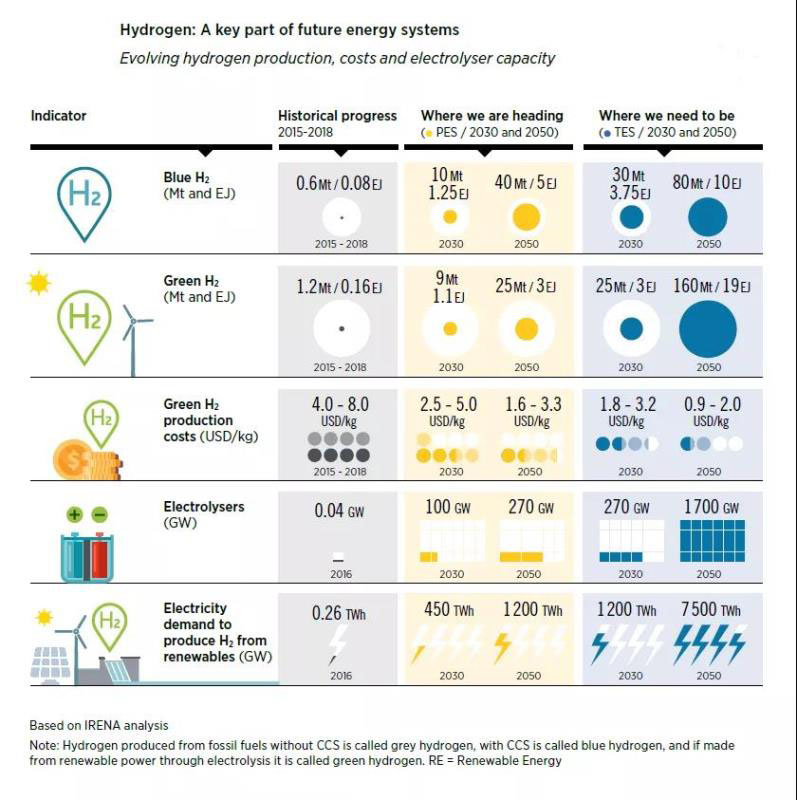 2018年綠氫成本約4-8美元/公斤,按照目前的趨勢(shì)到2030年可達(dá)2.50-5.0美元/公斤、2050年可達(dá)1.6-3.3美元/公斤;但是按照巴黎氣候協(xié)定的要求2030年應(yīng)達(dá)1.8-3.2美元/公斤、2050年應(yīng)達(dá)0.9-2.0美元/公斤。