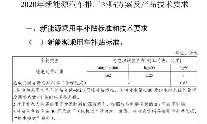 《通知》規(guī)定,新能源乘用車補(bǔ)貼前售價須在30萬元以下(含30萬元),才有資格享受補(bǔ)貼政策。2020年4月23日至2020年7月22日的過渡期期間,符合2019年技術(shù)指標(biāo)要求但不符合2020年技術(shù)指標(biāo)要求的銷售上牌車輛,按照《關(guān)于進(jìn)一步完善新能源汽車推廣應(yīng)用財政補(bǔ)貼政策的通知》(財建〔2019〕138號)對應(yīng)標(biāo)準(zhǔn)的0.5倍補(bǔ)貼,符合2020年技術(shù)指標(biāo)要求的銷售上牌車輛按2020年標(biāo)準(zhǔn)補(bǔ)貼。補(bǔ)貼車輛限價規(guī)定過渡期后開始執(zhí)行。