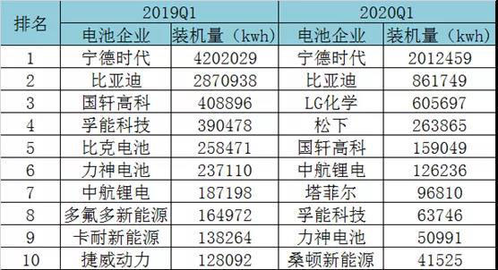 具體來(lái)看,與2019年同期相比,2020年Q1乘用車動(dòng)力電池市場(chǎng)存在以下變化: