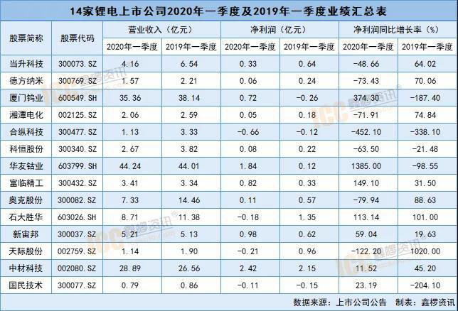下面將14家鋰電材料上市企業(yè)第一季度詳細(xì)表如下: