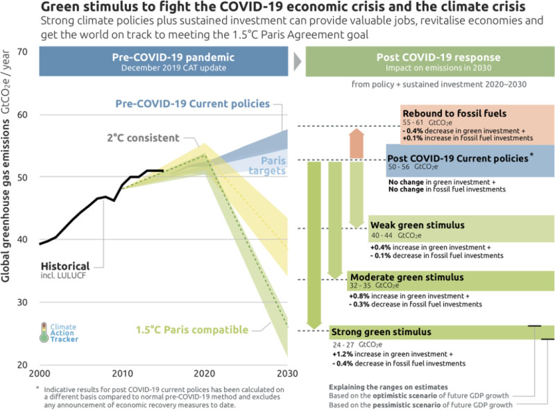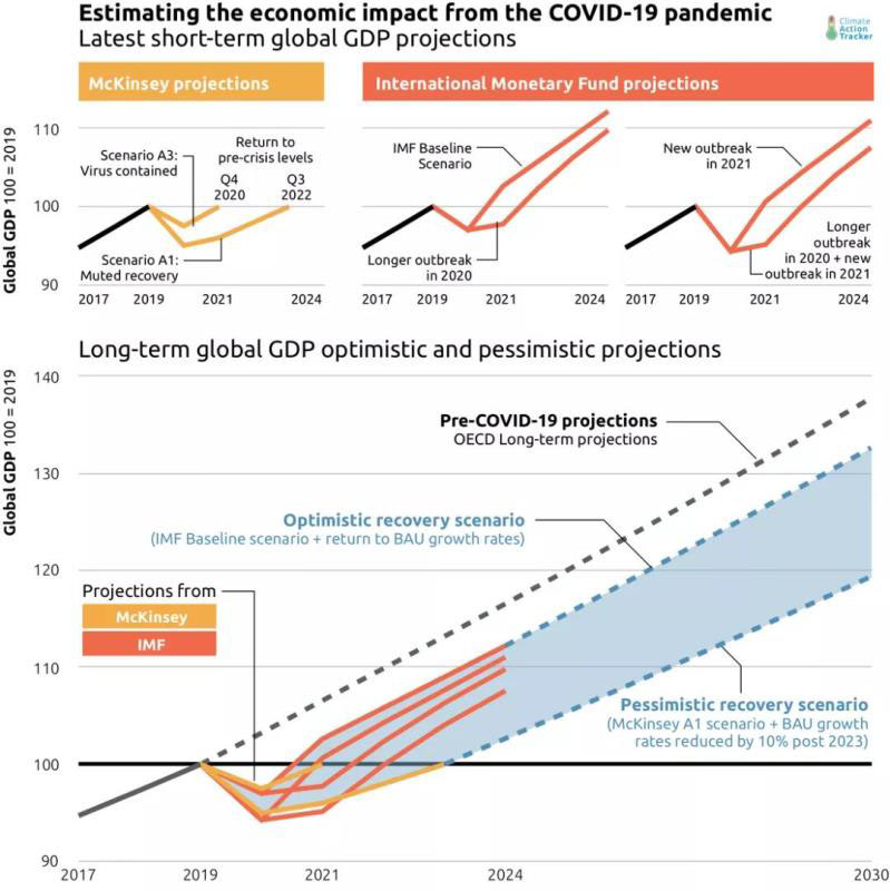 新冠疫情大流行病造成的經(jīng)濟(jì)損失將導(dǎo)致2020年全球化石燃料和工業(yè)二氧化碳排放量下降4%至11%,并可能在2021年再次下降1%,相比2019年碳排放下降9%。氣候行動(dòng)追蹤C(jī)limateActionTracker(CAT)機(jī)構(gòu)發(fā)表報(bào)告,為疫情之后各國(guó)政府的氣候政策建言。