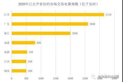 從已公開省份的市場(chǎng)交易計(jì)劃規(guī)模來(lái)看,江蘇省和廣東省的市場(chǎng)交易規(guī)模領(lǐng)跑全國(guó),且較2019年分別提高了5%(3000億千瓦時(shí))和30%(2000億千瓦時(shí))。