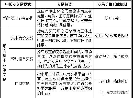 中長(zhǎng)期交易包括多年、年、季、月、周、多日等日以上周期的交易,主要采用場(chǎng)外雙邊協(xié)商交易和場(chǎng)內(nèi)集中競(jìng)爭(zhēng)交易兩種模式,其中,集中競(jìng)爭(zhēng)交易又包括集中競(jìng)價(jià)、滾動(dòng)撮合和掛牌交易三種交易形式。