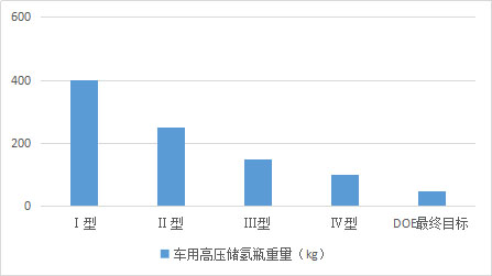 圖3不同車用高壓儲(chǔ)氫罐類型的重量(按照儲(chǔ)氫5kg對(duì)比)