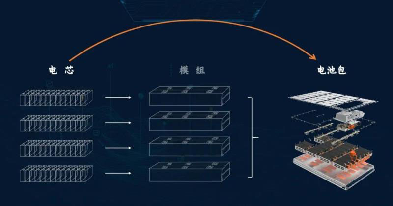 之前,主流車用動力電池的發(fā)展思路是,從電芯組成模組,再把模組組成電池包。而CTP,cell to pack,是從電芯直接到電池包的技術(shù)路線。它基于方殼電芯的特性,利用其剛度,結(jié)合整包的結(jié)構(gòu)來對電池系統(tǒng)進(jìn)行簡化。