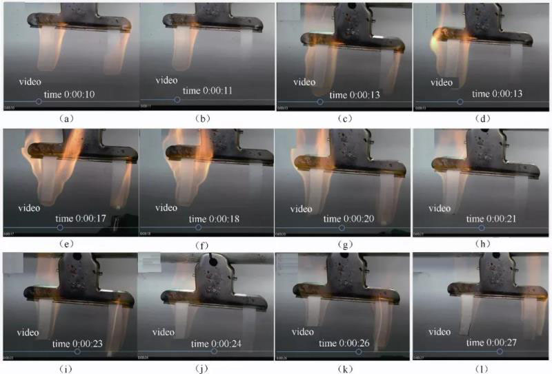 圖10 添加7% PFPN阻燃添加劑的阻燃效果(自熄滅5次)