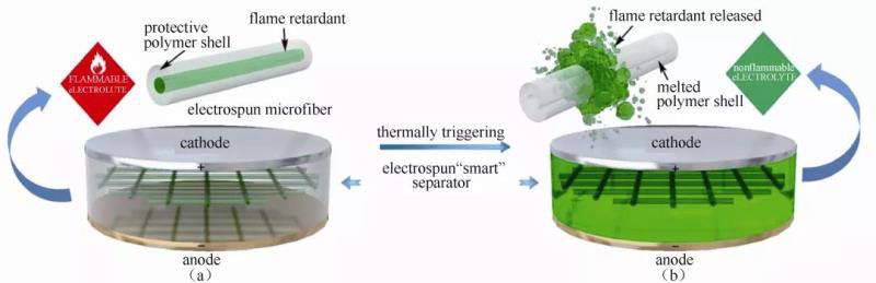 (3)發(fā)展聚合物微膠囊包裹阻燃劑的實用技術(shù),保證阻燃劑只在極端失控情況下起作用,并在大容量電池中驗證此技術(shù)。