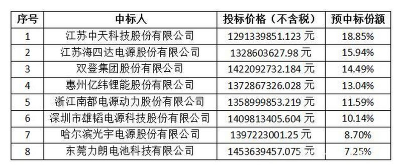4月29日,中國移動公布2020年通信用磷酸鐵鋰電池產(chǎn)品集中采購公布招標結(jié)果,中天科技、海四達、雙登、億緯鋰能、南都電源、雄韜股份、光宇電源、力朗電池等8家企業(yè)預(yù)中標。