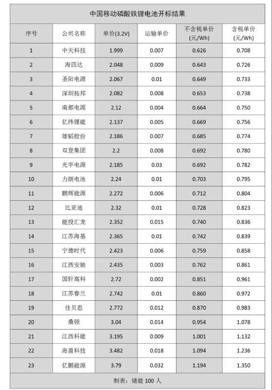 根據(jù)招標公告,中國移動本次對磷酸鐵鋰的采購需求量超過1.9GWh,按照25.08億元的最高投標價格計算,每Wh的價格約1.2元,實為最高限價。