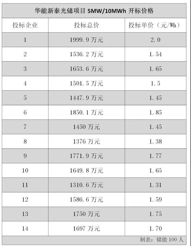 此次并非最低價中標,但平均報價仍遠低于2019年市場主流價格1.8元-1.9元/Wh。另外,“儲能100人”從知情人士獲悉,安徽協(xié)合風儲項目20MW/20MWh目前也已開標,最低報價1.4元/Wh(不含稅)。