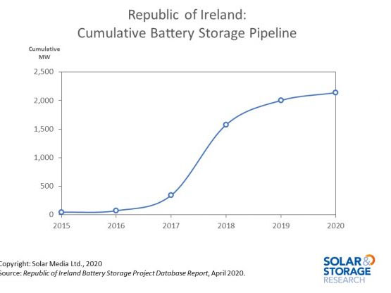 Solar Media公司市場研究團隊在過去的幾年中一直在追蹤和關(guān)注愛爾蘭儲能容量的增長。在此期間,隨著與電網(wǎng)相連的可再生能源發(fā)電量的增加,其儲能部署量也隨之增長。