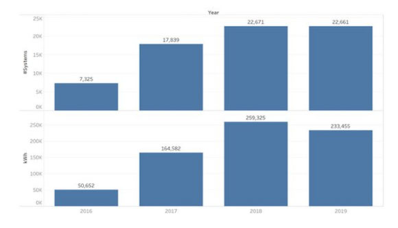 自2015年以來,Sun Wiz公司一直在跟蹤澳大利亞儲能市場的電池安裝量,Sun Wiz董事總經理兼報告作者Warwick Johnston表示:“雖然相對來說,住宅側的電池安裝量有所下降,但非住宅側的電池容量卻有大幅增加?!?