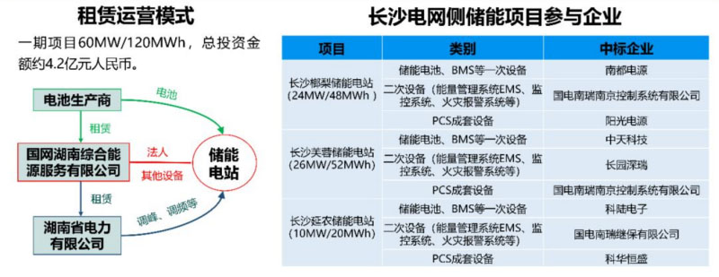 在這種租賃運(yùn)營模式中,被租賃的只有電池廠家的電池,其余諸如pcs等其他服務(wù)均由國網(wǎng)湖南綜合能源服務(wù)有限公司買單,再轉(zhuǎn)租給國網(wǎng)湖南電力公司用于儲能電站。