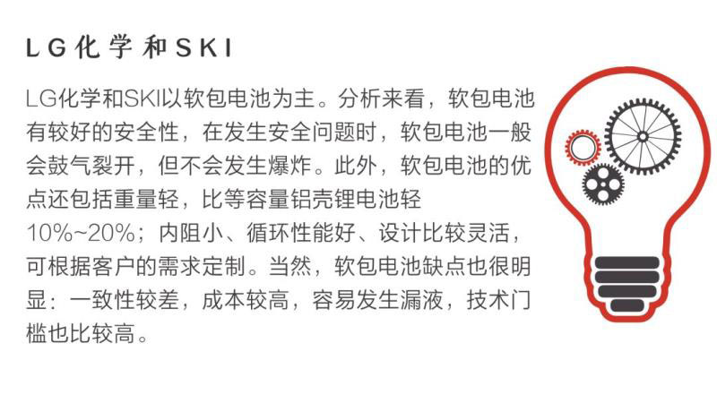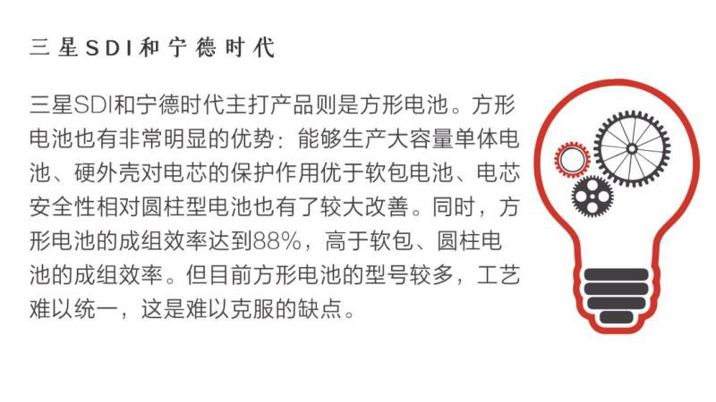 動(dòng)力電池的構(gòu)造來(lái)看,電芯只是基本單元,需要成組后才能發(fā)揮效能。目前來(lái)看,各不同類(lèi)型的電池成組效率有較大區(qū)別。LG化學(xué)與SKI主打的軟包電池單體能量密度比方形電芯高,但是在成組效率方面較低,目前能量密度轉(zhuǎn)化率約為80%;三星SDI與寧德時(shí)代主推的方形電芯成組效率最高,電芯至模組的能量密度轉(zhuǎn)換效率可高達(dá)90%;松下為特斯拉供應(yīng)的電池,不同的車(chē)型采用不同的規(guī)格,成組效率不盡相同。如特斯拉Model 3有兩種規(guī)格模組,能量密度轉(zhuǎn)化效率高達(dá)84%;Model X(90kWh版本)能量集成效率僅為60.41%;Model 3能量集成效率也只有64.2%。總體來(lái)看,方形電池的成組效率最高,圓柱電池則最低。