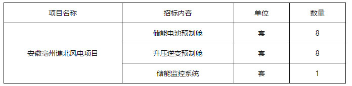 安徽亳州譙北風(fēng)電場項(xiàng)目配套20MW/20MWh鋰離子電池儲能系統(tǒng)采購項(xiàng)目