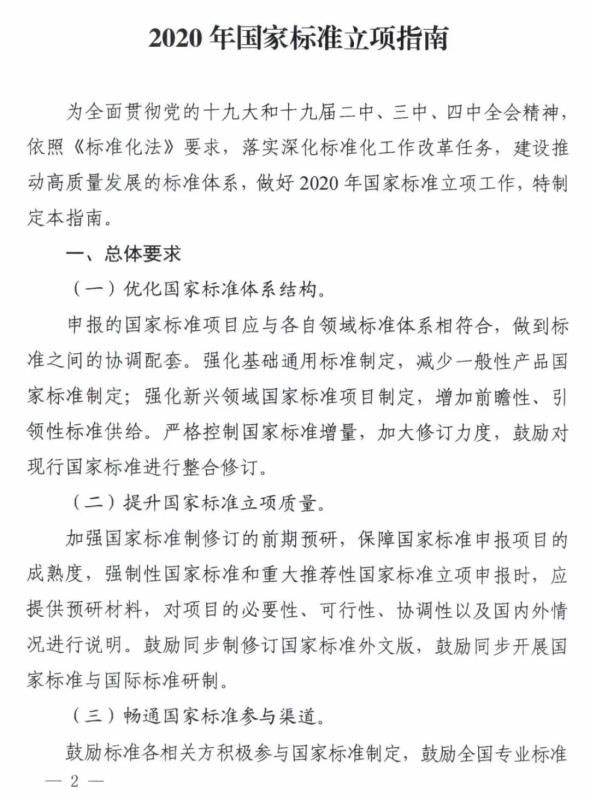 中國儲(chǔ)能網(wǎng)訊:近日,國家標(biāo)準(zhǔn)化管理委員會(huì)印發(fā)《2020年國家標(biāo)準(zhǔn)立項(xiàng)指南》。