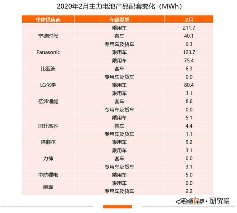 松下2月給2363輛特斯拉Model 3提供電池,共裝機(jī)123.7MWh,超越比亞迪排名第二。