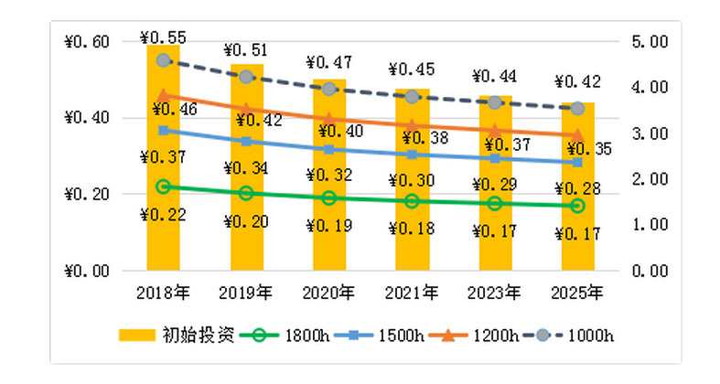圖1 光伏電站不同等效利用小時(shí)數(shù)LCOE測算(單位:元/千瓦時(shí))